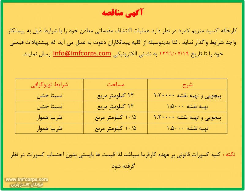آلومینیوم ( دلار بر تن ): 2627.50 مس ( دلار بر تن ): 9270.00 روی ( دلار بر تن ): 3448.00 نیکل ( دلار بر تن ): 29010.00 سرب ( دلار بر تن ): 2179.50 قلع ( دلار بر تن ): 30740.00 کبالت ( دلار بر تن ): 37963.10 طلا ( دلار بر اونس ): 1,662.66 نقره (دلار بر اونس): 19.27 منیزیم ( دلار بر تن ): 3618.45 اکسید منیزیم %97 ( دلار بر تن ): 1400 اکسید آلومینیوم یا آلومینا (دلار بر تن): 650 نرخ مواد معدنی
